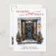 This watercolor new home for the holidays announcement postcard with "Decking New Halls - Merry Christmas From ___" on the front and "Wishing you peace and joy this holiday season!", your new address and phone number, your family name and your first names on the back in modern yet traditional fonts would be perfect to send to your friends and family since you have moved to a new home this year. The black front door could be anywhere and the festive trees and wreath add that extra touch of Christmas spirit. To customize and make these your own select "Personalize this template" and type in your information. It's so easy!