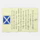 Cette serviette de thé pour des défenseurs de l'indépendance écossaise comporte les mots célèbres de la déclaration d'Arbroath à l'origine écrite dans le latin et signé le 6 avril 1320, à l'abbaye d'Arbroath, six ans après Robert le Bruce a défait l'anglais chez Bannockburn en 1314. Il lit "pour tant que mais cent de nous reste vivant, nous sur toutes les conditions ne sera jamais apporté selon la règle anglaise. Il n'a en vérité pas lieu pour la gloire, ni la richesse, ni les honneurs que nous combattons, mais pour la liberté - pour seul cela, qu'aucun homme honnête n'abandonne mais avec la vie elle-même." Au dessus de la conception est une illustration d'un chardon simple, la fleur nationale de l'Ecosse. Sous les mots de agitation de la déclaration de l'indépendance écossaise est un graphique du drapeau écossais, également connu comme Saltire, avec la croix blanche de Saint Andrews sur un arrière - plan bleu-foncé. Le 700th anniversaire de la bataille de Bannockburn a lieu cette année. Le référendum sur l'indépendance pour l'Ecosse du gouvernement de Westminster est tenu le 18 septembre, quand les gens habitant et travaillant en Ecosse voteront l'avenir de notre pays comme nation indépendante.