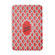 Chinese scallop, or wave pattern, traditional in textile and enamel work, bath mat with monogram in deep Chinese red, silver grey / grey, black and white