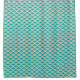 Chinese scallop, or wave pattern, traditional in textile and enamel work, shower curtain in soft teal blue, aqua / seafoam and white, with accents of coral orange