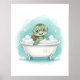 Ajoutez du charme à votre espace avec cette décoration de salle de bain pour enfants représentant une tortue dans une baignoire, dans un style aquarelle doux en teal et aqua.