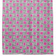 Art Deco Greek key or labyrinth pattern shower curtain in light silver grey / grey and darker graphite grey accented with deep fuchsia pink