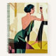 Journal in an elegant Art Deco / jazz age lady in jade green, holding a wineglass, in a semi-abstract, modern art style