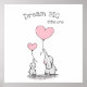 Déco murale Rêvez Grand pour la décoration de la belle nurserie en gris et rose poudré. Présentant deux éléphants tenant des ballons en forme de cœur avec un panneau Rêvez Grand Petit(e) dans une police décorative