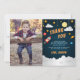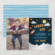 Cartes de remerciement plates et mignonnes pour l'anniversaire de votre petit explorateur spatial avec une fusée, des étoiles, des planètes et des nuages sur fond de ciel nocturne, avec "merci" et votre message personnel et signature. Personnalisez avec une photo préférée du garçon d'anniversaire pour un effet personnel cool.