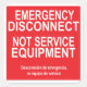 Une feuille de six, 3" x 3" DÉCONNEXION D'URGENCE, PAS DE SERVICE ÉQUIPEMENT étiquettes avec sous-titres espagnols pour électriciens aux services électriques étiquettes. Desconexión de emergencia, pas d'équipement de servicio