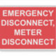 UN DÉCONNEXION D'URGENCE, METER DÉCONNECTE étiquette pour électriciens pour satisfaire aux exigences du Code national de l'électricité de 2023 de l'article 230.85(E)(1) et (2).