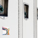 Deconstructed Rainbow V by Grace Popp. Features strips of different colours and lengths that form a loose rainbow shape. | 141009GG