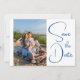Si vous cherchez une date de sauvegarde qui n'est pas si formelle, cette conception est pour vous. L'avant et l'arrière ont un arrière - plan blanc. Il y a une zone pour la photo, sur le devant, avec le texte "Enregistrer la date". Sur le texte arrière, vous pouvez garder ou customiser.