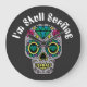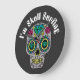 Beautiful "I'm Skull Surfing" lettering Large Clock with colourful and decorated abstract skull for the Halloween season.