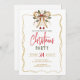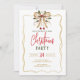 Elegant and festive Christmas party invitation featuring a watercolor-decorated bow and hand-drawn gold frame, ready for customization.