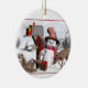 Adorable snowman, with deer next to a decorated mailbox winter scene ceramic holiday ornament . This cute ornament features a holiday decorated mailbox with a present inside and a stocking hanging on it's side. Next to the mailbox are two curious deer fawns, and a happy little snowman! All are in front of a wintery snow background. A joyful holiday decoration ornament digital art by XG Designs NYC. A great gift for friends, family or a special mail carrier, mailman, or mail woman! For more occupational, mail carrier holiday cards and gifts please visit our shop!