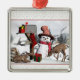 A classy and Adorable snowman, with deer next to a decorated mailbox winter scene silver framed ornament! Available in round and square shaped. This lovely silver ornament features a cute snowman, with two curious deer fawns next to a decorated mailbox with a presents inside and a stocking hanging on it's side. All are in front of a wintery snow background. A joyful holiday decoration ornament digital art by XG Designs NYC. The ornament resembles a silver frame like appearance around the artwork, and the back is all silver. The final touch is the lovely satin red ribbon it hangs from. A very classy gift that is great for friends, family or a special mail carrier, mailman, or mail woman! For more occupational, mail carrier holiday cards and gifts please visit our shop!