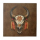 This unique design features a symmetrical bull skull with four feathers attached to the horns. Rough textures and natural colours gives the graphic a realistic look. The skull is decorated with native patterns including a stylized star in the centre of the forehead. The skull sits on a textured background that gives the pattern an aged leather look. This aggressive skull design is a stunning and unique Native American design.