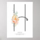 Décoration de maison florale pêche rose Monogramme