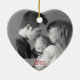 Simple ornement dit "1er Noël" sur le devant; ajoutez votre photo préférée et l'année pour célébrer votre première année en famille.