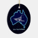 Une simple silhouette blanche d'un traîneau à chiens et de la Croix du Sud superposée sur une carte bleue de l'Australie. Tout sur un arrière - plan étoilé. Ajoutez votre propre texte à l'avant et votre photo à l'envers. Qui l'aurait nié ? Il se déplace à l'envers à Oz. Le traîneau à chiens est très populaire en Australie. Au Mont Hotham à Victoria, il y a une grande course chaque année.