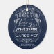 La façon idéale de montrer votre appréciation à un soignant. Cet ornement élégant montre le message "Merci d'être un prodigieux aidant - ou changer le nom pour convenir à votre accompagnateur ou à votre travailleur. Cette conception fonctionnerait bien pour les soignants ou les assistants qui s'occupent d'un parent âgé dans un foyer de soins, le personnel de soutien au cancer - ou les travailleurs à domicile qui visitent un membre de la famille handicapé. Convient également aux médecins et aux infirmières! En bleu foncé et blanc, ce design stylisé de typographie fait une façon moderne et attrayante de dire merci.