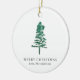 L'ornement moderne de Noël avec un design simple avec mon arbre de pin aquarelle peint à la main avec l'accueil modifiable "Joyeux Noël". Utilisez le modèle pour ajouter une photo à l'arrière.