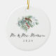 Célébrez votre journée spéciale avec cet élégant ornement en céramique verte avec de l'aquarelle verte et des accents d'eucalyptus autour d'une photo mariage personnalisée. Ce gardien est idéal pour ajouter une touche de beauté d'inspiration nature à votre décor de vacances. Avec ses teintes vertes douces et sereines et son design personnalisable, cet ornement est un souvenir durable de votre mariage, mêlant style moderne et charme intemporel. Idéal pour les jeunes mariés ou comme cadeau réfléchi, il apporte chaleur et sentiment à votre arbre de Noël année après année.