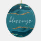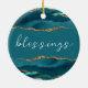Élégant ornement en céramique avec le mot "bénédictions" dans une jolie tranche de géode d'agate avec des accents d'arrière - plan et de parties scintillant dorée turquoise et turquoise. Décor inspirant et motivant. Personnalisez avec vos propres mots ou messages.