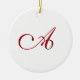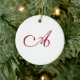 Écriture rouge Berry élégant monogramme ornement céramique de Noël. Customisez avec votre famille monogramme initial ou monogramme initial d'un être cher que vous donnez. Conçu pour correspondre à notre collection de bijoux de Noël rouge Berry.