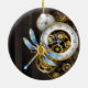 Cadran d'antiquités avec or et lances en laiton, décoré de libellules mécaniques sur arrière - plan brun rayé. Steampunk.