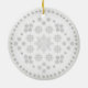 Ajoutez une touche élégante à votre sapin de Noël avec ce magnifique ornement en céramique. Parfaitement rond et orné d'un design fascinant de flocon de neige, cet ornement présente des cercles concentriques de flocons de neige complexes. Le flocon de neige central attire l'attention avec son design audacieux et symétrique, tandis que les plus petits qui l'entourent créent un effet hivernal harmonieux. Conçu avec soin, le même motif exquis grace les deux côtés, assurant la beauté de tous les angles. Une délicate corde dorée complète le look, ajoutant une touche de sophistication car elle est accrochée sans effort sur votre arbre. Cet écrin intemporel fera certainement partie intégrante de votre décor de vacances !