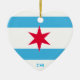 Celebrate your love for Chicago with this beautiful ceramic ornament featuring the iconic six-pointed star from the city's official flag. Perfect for decorating your Christmas tree or year-round display, this keepsake is an excellent gift for residents, travelers, or anyone who holds a special place in their heart for the Windy City and Illinois. It comes in various shapes, including the heart shown.