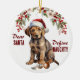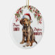 Sur le devant de cet ornement de vacances est l'image d'un adorable chiot Labrador Retriever au chocolat portant un chapeau de Père Noël et assis avec un ornement d'arbre cassé devant lui. Le texte en rouge dit "Cher PÈRE NOËL, définissez-vous NAUGHTY". Au verso, le texte rouge et vert indique MERRY CHRISTMAS", et il y a des champs de texte supplémentaires pour vous permettre de customiser à ce que vous voulez. Assurez-vous de voir d'autres images de Lab, ainsi que des produits, à Dog Village.
