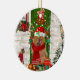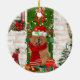 Chow Chow Dog assis à l'extérieur de la maison décorée avec la couronne de Noël, sapin de Noël est une idée cadeau de Noël parfait pour les amoureux de les chiens.