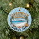 Charmante décoration de vacances arrondie avec une vignette de style rétro du Clearwater Beach, FL waterfront. Ajoutez un message spécial de votre propre côté sur le dos. Disponible sur une variété de vêtements et d'accessoires.