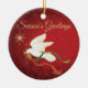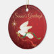 Une colombe blanche sereine qui vole parmi les étoiles portant une branche d'olivier avec des rubans rouges et verts... Souhaitant à tous un "Joyeux Noël"!