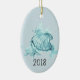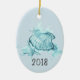 L'ornement Keepsaké présente un coquillage d'aquarelle et une illustration d'étoiles de mer sur un arrière - plan bleu clair. Personnaliser avec année ou autre texte spécial