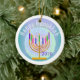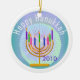 Beau ornement Hanoukka avec neuf menorah bougie dit "Heureux Hanoukka" ! Vous pouvez facilement ajouter l'année en cours à ce keepsaké Happy Hanoukka keepsaké!