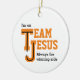 ÉQUIPE élégante JÉSUS Décor de la Déclaration Côté avec TEXTE PERSONNALISABLE en typographie orange et noire. Cet ornement chrétien dit "JÉSUS JÉSUS, JE SUIS EN ÉQUIPE - TOUJOURS LE CÔTÉ GAGNANT et a été inspiré par 1 Corinthiens 15:57 - "Mais merci à Dieu, qui nous donne la victoire par notre Seigneur Jésus Christ." Vous pouvez remplacer 'I'M ON' par votre nom. Cette décoration chrétienne TEAM JESUS ferait un grand ajout à votre décor dortoir pour accrocher quelque part, vous le verrez toujours pour vous rappeler de Qui vous êtes. Choisissez parmi une large sélection de vêtements et cadeaux inspirants chrétiens et religieux conçus par Berean Designs.