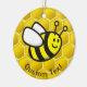 Caricature souriante d'abeilles volantes sur un arrière - plan sans soudure de ruche d'abeilles. Texte personnalisé des deux côtés.