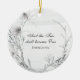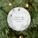 Écriture de citation inspirante customisée ornement de Noël mariage dépeint de simples fleurs d'aquarelle et feuillage dans des tons de gris muet. Il comporte la Bible Verse Éphésiens 5:31, "Et les deux deviendront un." Personnalisez le dos avec les noms et la date ou les détails de votre choix.