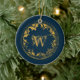 Un design bleu et or unique qui présente un motif vintage fusionné avec un monogramme en détresse. Le monogramme antique rustique utilise la calligraphie script qui peut être customisée à votre initiale. Un cadeau parfait ou un décor maison pour toutes les occasions et toutes les saisons.