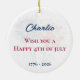 The design features a watercolor dog wearing a stars-and-stripes hat on a soft red and blue stars background. Personalize the back with your dog’s name, a custom 4th of July greeting, and the year to create a unique keepsake for 1776–2026 celebrations. Whether it’s to honor your pet, commemorate a special moment, or simply add a festive touch, this ornament makes a meaningful keepsake.
