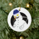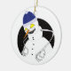 Un bonhomme de neige terrifiant avec un casquette de bas bleu.