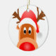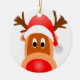 Face de rennes de Noël avec grand nez rouge portant casquette de Noël rouge.