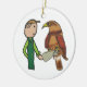 La conception de la faucille montre un fauconer fervent tenant son oiseau de proie qui l'observe de près.