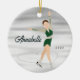 Créez un souvenir unique pour votre patineur artistique préféré. Un athlète brun en vert avec des patins et de la place pour personnaliser. Design original par Night Owl's Menagerie, 2023.