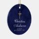 Garçons Baptême Baptême Bleu Ornement en céramique. Cet ornement en céramique bleu marine et or, orné d'une fausse croix de parties scintillant d'or, est le souvenir idéal pour le baptême, le baptême ou la première communion de votre enfant. Éléments correspondants disponibles.