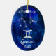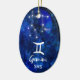 Gemini Zodiac Constellation Blue Galaxy Monogramme Design. Avec police de script brossé tendance, couleur arrière - plan céleste bleu foncé, constellation d'étoiles brillantes, et le symbole Twins. Symbole astrologique moderne Horoscope de naissance, est parfait pour tout anniversaire de Gemini Du 21 mai au 20 juin! Avec Monogrammed en option Premier moyen et nom de famille Lettres initiales (ou laissez-le en blanc). Fait un grand cadeau pour toute fille ou garçon, membres de la famille, Ados, femme, mari, amis et l'astrologie Lover. Cosmic Space Night Sky Oval Ornament! ~ Regardez ma boutique pour voir l'ensemble de la suite Home & Office pour ce design!