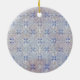 This ornament features a soft, frosty snowflake pattern arranged in a beautiful repeating lattice. Shades of icy blue, winter white, and soft beige blend together to create a calm, peaceful design with a vintage wintry feel. Each snowflake sits neatly in its own place, forming a delicate geometric tapestry that brings to mind frosted windows, early morning snow, and quiet winter landscapes.