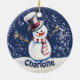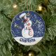 Aquarelle d'un bonhomme de neige heureux sur ornement de Noël personnalisé.