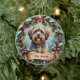 A beautiful, ultra-detailed Christmas design featuring a realistic portrait of the breed centered within a soft, festive winter frame. This elegant design includes pine branches, red berries, and snowflakes against a snowy backdrop, illuminated by warm holiday lighting. The balanced, round composition includes clear space below the dog for customization.