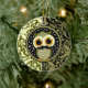 Motif noir, jaune et vert drôle et mignon de damassé avec Noël adorable d'ornements et de cadeaux de Noël de hibou de moustache de point de polka et de hibou d'arrière - plan d'étoiles ou toute occasion. Ornement mignon d'iPhone de hibou et cadeaux spéciaux pour des amants et des ornithologistes de hibou !